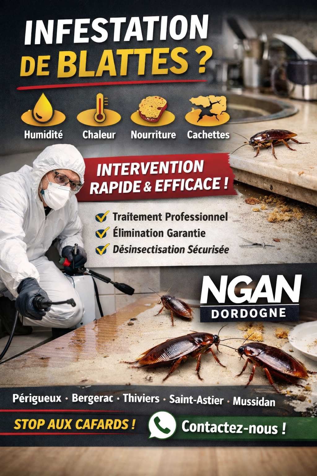 - Intervention : Application des solutions appropriées pour éliminer les nuisibles.